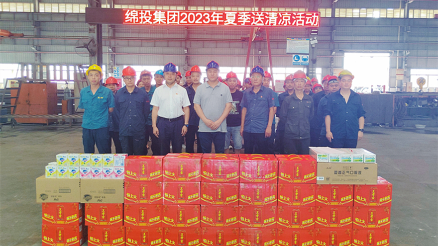 7月25日,炎熱的夏季“烤”驗(yàn)著綿專(zhuān)公司一線(xiàn)的生產(chǎn)員工。為了緩解員工們?cè)诟邷叵碌墓ぷ鲏毫?,提?/span>工作效率和質(zhì)量,綿投集團(tuán)黨委委員、副總經(jīng)理孫瑞云,集團(tuán)工會(huì)一行來(lái)到一線(xiàn)工作崗位,開(kāi)展送清涼慰問(wèn)活動(dòng),為奮戰(zhàn)在高溫一線(xiàn)的勞動(dòng)者們送上一份清涼、一份關(guān)懷。綿專(zhuān)公司總經(jīng)理邢維民陪同參加慰問(wèn)活動(dòng)。