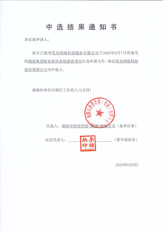 綿投集團(tuán)財務(wù)管理系統(tǒng)建設(shè)項目中選結(jié)果通知